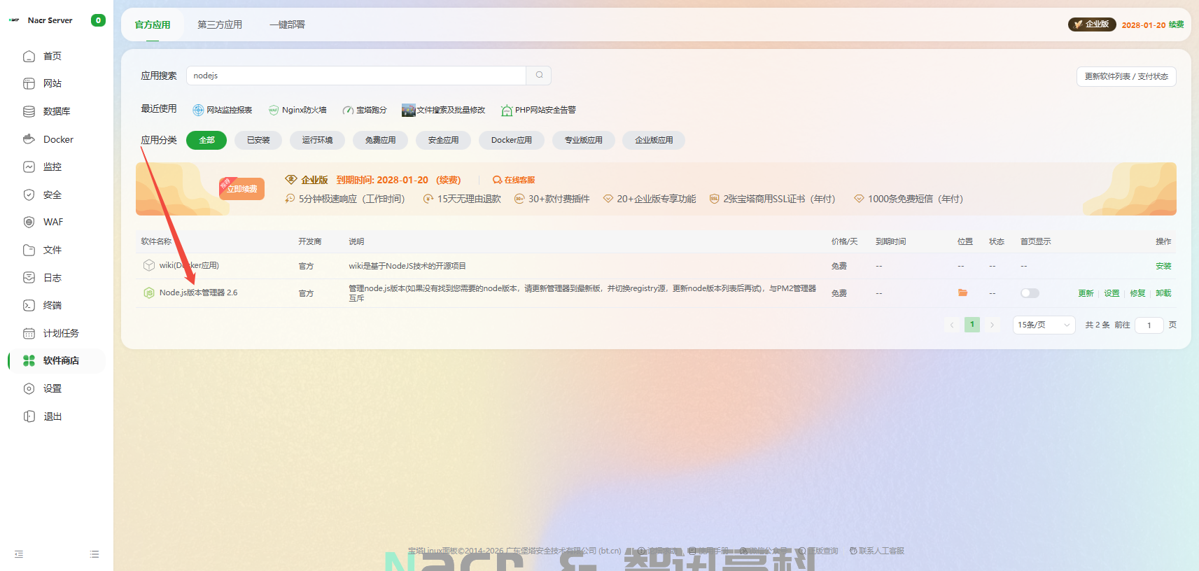 1. 前往宝塔的应用中心,安装nodejs项目管理器