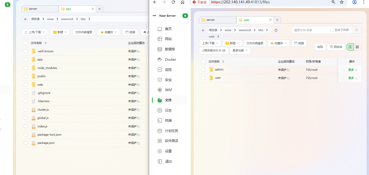 3. 创建文件夹,上传源码,分别为:后端nodejs,前端nodejs,后台nodejs